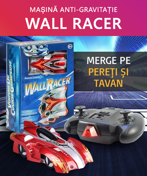 MAȘINĂ ANTI-GRAVITAȚIE WALL RACER Mașina Wall Racer, care merge pe pereți și tavan - una dintre cele mai interesante inovații recente. Mașina va atrage atenția tuturor membrilor familiei, indiferent de vârstă. Așa ceva nu ați mai văzut!