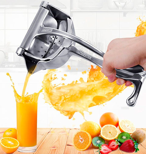Accesoriul este format din 2 părți: cea principală, unde este plasat fătul, și mânerul mobil superior. Pentru a obține suc, trebuie doar să îl mutați în jos. Farfuria va presa fructele, iar sucul va curge din el.