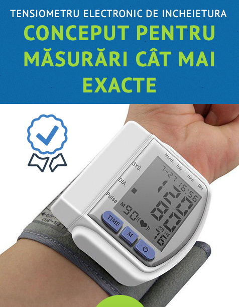 TENSIOMETRU ELECTRONIC DE INCHEIETURA CONCEPUT PENTRU MĂSURĂRI CÂT MAI EXACTE Acesta este un sistem modern care gestionează măsurarea pulsului și a tensiunii. Acum nu mai trebuie să depui mult efort folosind aparate de mână incomode și voluminoase!